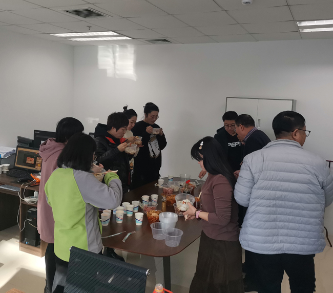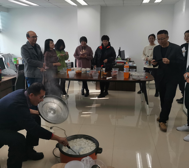 盡管中心目前沒有食堂,不具備大家一起包餃子的條件,但中心員工參加活動的熱情依然高漲,有的人負責采購,有的人從家里帶鍋,有的人幫忙煮餃子,現(xiàn)場熱鬧一片。當大家吃上了熱騰騰的餃子時,每個人都在這寒冷的冬至感受到了大家庭的溫暖。