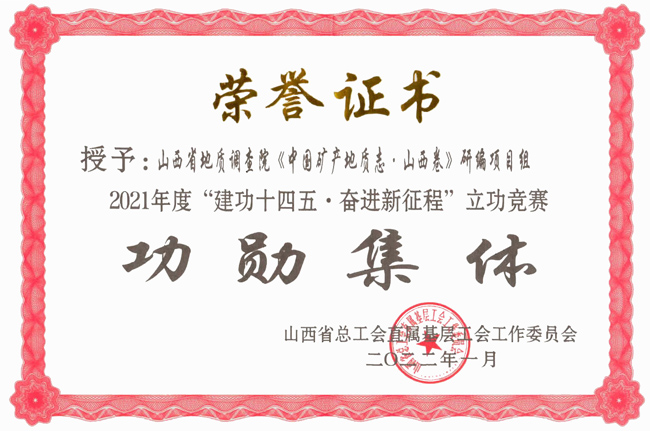 日前,地調(diào)院有限公司獲得山西省總工會(huì)直屬基層“2021年度‘建功十四五·奮進(jìn)新征程’立功競(jìng)賽”“功勛集體”榮譽(yù)稱號(hào)。