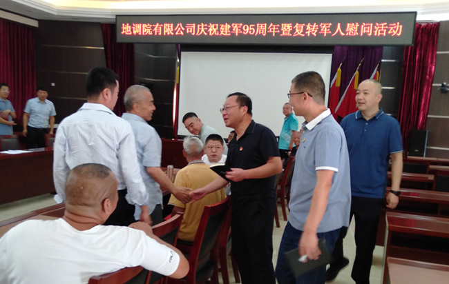 今年是中國人民解放軍建軍95周年,為深入貫徹落實習(xí)近平總書記關(guān)于做好退役軍人工作的重要指示精神,扎實做好“八一”期間擁軍優(yōu)屬工作。8月1日上午,地調(diào)院有限公司組織開展《慶祝建軍95周年暨復(fù)轉(zhuǎn)軍人慰問活動》。