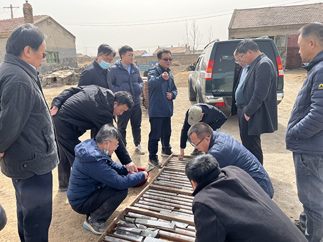 專家組首先聽取了工作進展匯報,隨后赴野外實地查看了部分探槽、鉆孔及巖心。室內(nèi)系統(tǒng)檢查了各類原始資料,并提出了修改意見。經(jīng)討論,專家組一致認為:該項目完成了設計批準的主要實物工作量,原始資料齊全,工作質(zhì)量符合要求,通過地表揭露及深部工程驗證,取得了較好的找礦成果,同意對野外工作予以驗收,評定為“優(yōu)秀”級。