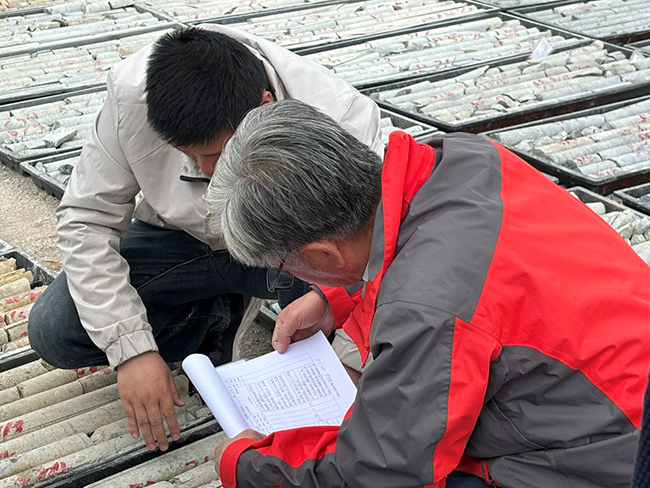 監(jiān)理組首先聽取了項目負責關(guān)于項目進展、鉆探成果和項目質(zhì)量體系運行情況的簡要匯報,詳細檢查了各項原始地質(zhì)資料,后赴野外實地抽查了鉆孔ZK2-2、ZK-2-1施工質(zhì)量、地質(zhì)編錄和采樣情況,并對鉆孔巖芯的礦化蝕變進行了詳細觀察。