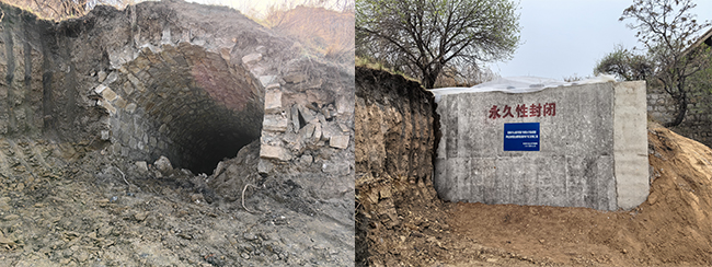 該項目作為生態(tài)環(huán)境部水污染防治儲備庫重點項目,自2023年2月17日開工建設以來,在老窯水水文地質改造方面已順利完成地裂縫和地面塌陷填埋、廢棄井筒回填、廢棄鉆孔封堵以及廟溝鋪底防滲工程施工,水文地質改造工程有效阻斷了老窯水補給通道,減少了降雨入滲及地表徑流對采空區(qū)老窯水的補給,經過兩年的持續(xù)監(jiān)測,溢流點日均總溢流量相比去年削減了50%以上,風摩亭溢流點已經斷流3個月,治理效果符合同要求。