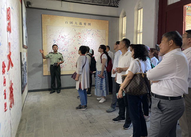 大家懷著無比崇敬的心情依次參觀了坐落在太行山西麓,蔭隱于山脈青綠之中的八路軍總司令部舊址:山西省長治市武鄉(xiāng)縣磚壁村、王家裕村。紅軍東渡、洛川會議、平型關大捷、百團大戰(zhàn)、敵后抗戰(zhàn)……通過各紀念館講解員的詳實講解,一幅幅珍貴圖片、一件件歷史文物、一個個真實往事,把大家?guī)肫D苦卓絕的抗戰(zhàn)歲月。黨員同志不時駐足,認真聽取講解,詢問有關細節(jié),了解當年戰(zhàn)斗歷史和感人事跡,感受信仰力量,體悟思想偉力,深刻領會我們黨領導人民浴血奮戰(zhàn)的光輝歷程,為民族獨立和人民解放作出的偉大貢獻。
