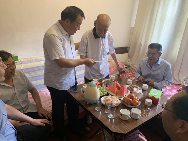 每到一處,王潤(rùn)??偣づc老黨員同志們親切交談拉家常,交談中詳細(xì)了解他們的生活情況和身體狀況,共同回憶曾經(jīng)一起努力工作時(shí)的場(chǎng)景。并代表局黨組對(duì)老同志們?yōu)榈刭|(zhì)事業(yè)和社會(huì)發(fā)展作出的貢獻(xiàn)表示感謝,希望他們?cè)谏眢w條件允許的情況下,繼續(xù)為我局高質(zhì)量發(fā)展建言獻(xiàn)策。