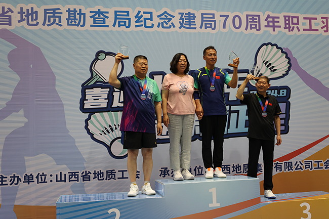 2024 年 8 月1日至 5日,在山西省地質(zhì)勘查局紀念建局70周年職工羽乒聯(lián)賽中,地調(diào)院有限公司羽毛球、乒乓球兩組參賽選手通過頑強的拼搏,贏得了羽毛球團體第三名和混雙第一名、乒乓球團體第四名和單打第二名的好成績。