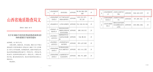 近日,山西省地質(zhì)勘查局公布了2024年度全局優(yōu)秀地質(zhì)成果評選結(jié)果。山西省地質(zhì)調(diào)查院有限公司憑借扎實(shí)的專業(yè)功底與持續(xù)的創(chuàng)新突破,在眾多參評單位中脫穎而出,共計(jì)榮獲地質(zhì)勘查成果獎8項(xiàng)、科研成果獎2項(xiàng),獲獎數(shù)量與等級均位居全局前列,充分彰顯了公司在地質(zhì)勘查與科研領(lǐng)域的綜合實(shí)力和引領(lǐng)作用。
